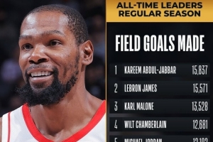 里程碑!杜兰特运动战进球数超越火箭名宿奥拉朱旺 升至历史第10