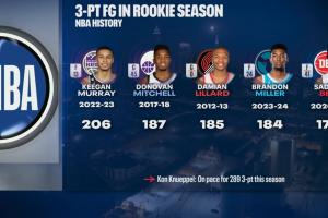克尼佩尔有望破纪录!新秀赛季历史三分榜:基根·穆雷206记第一