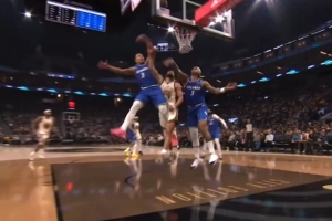 库里上篮被包夹撞飞&身体都被撞歪了 裁判没有表示