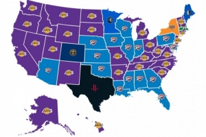 NBA2K美国各州被选择最多的队:湖人霸屏 雷霆次之 得州钟爱火箭