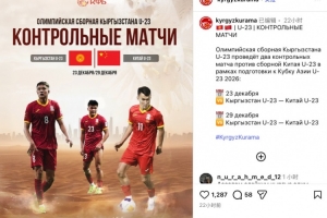 公告写道:“为备战即将到来的2026年U23亚洲杯,吉尔吉斯斯坦U23国家队将进行两场热身赛,对手是中国男足U23。比赛将在12月23日和12月29日进行。”