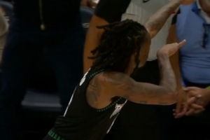 嘿,俺就是玩!文班亚马救球冲出底线出界 索性观众席就地放球