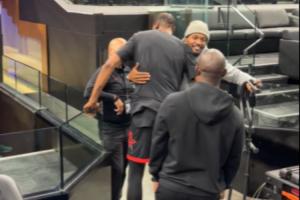 前太阳队友!比尔拄着双拐与杜兰特拥抱!