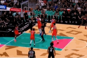 就是高啊!文班亚马空接不进 随后自己连续补篮最终还是将球打进