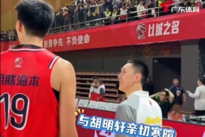 赛后徐昕与广东队队员一一握手致意 前队友们送上生日祝福
