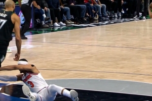 戈贝尔和哈特抢板激烈 哈特倒地扒拉戈贝尔膝盖引冲突&哈特恶犯