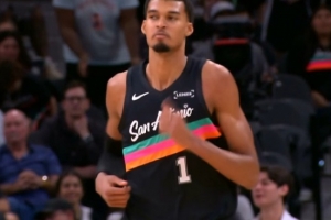 进攻犯规不算!文班亚马推开切特秀大风车扣篮