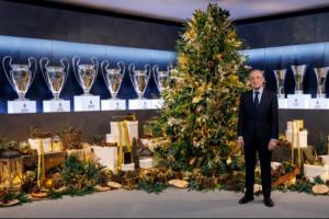 太气派了皇马官方送圣诞祝福,球队荣誉室15座欧冠金光璀璨