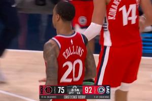 船三崩?不!火三崩!亚当斯3秒违例+科林斯三分 快船领先17分!