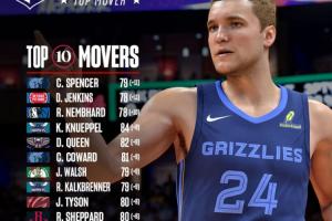 2K能力值涨幅Top10:斯潘塞&詹金斯+11 奎因&克尼佩尔+9 谢泼德+8