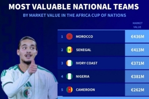 非洲杯球队身价榜:摩洛哥4.36亿欧居首,塞内加尔4.13亿欧次席