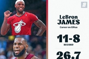 圣诞大战对比:詹姆斯11胜8负 KD6胜6负 库里4胜7负&场均17.6分