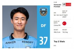 18岁中国后卫关德晴升入川崎前锋一线队,球员在日本出生长大