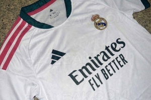 皇马下赛季主场球衣谍照:经典白色主色调,深绿镶边+粉红三道杠