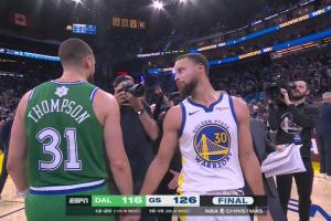 啥时候回莱?克莱赛后拥抱一堆勇士人 库里盯着他看