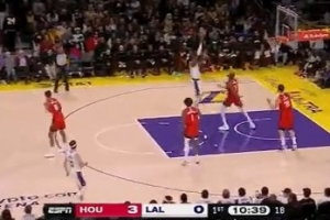 连珠炮!杜兰特和小贾巴里相继飙中三分 火箭领先17分打停湖人