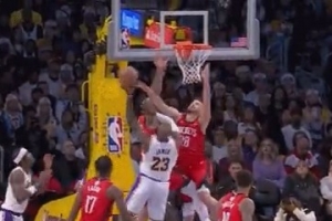 马上41了啊!詹姆斯冲筐对抗火箭两大内线高难度得分