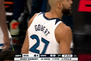 情况不妙!戈贝尔推倒穆雷被吹防守犯规 个人累计4犯被迫下场