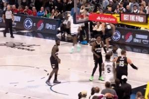 华子扣篮后拍掉约基奇手中球延误比赛 约基奇罚球砍下50+豪华三双