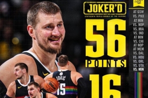 掘金官方晒约基奇56分三双海报:有史以来圣诞大战的最佳表现
