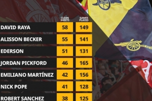 门神!拉亚英超首秀以来联赛零封58场,英超门将同期最多