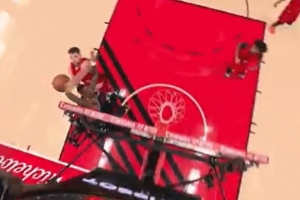 好像打到头了!科林斯海报扣篮被帽劈叉 但吹了克林根犯规