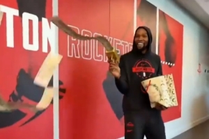 火箭众将收圣诞礼物:KD获得easy money机 谢泼德收大学宿敌球衣