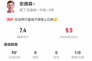 1亿贵吗?安德森本场2解围3拦截4抢断 8长传7成功+15对抗10成功
