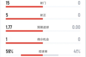 压制!阿森纳半场1-0布莱顿:射门15-0,射正5-0,控球率59%-41%