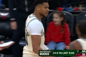 肌肉碰撞!字母哥强行杀出突破空间 连续两次暴扣终结很兴奋