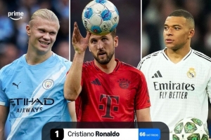 21世纪戴帽次数榜:C罗66次居首,梅西61次第二,哈兰德26次第六