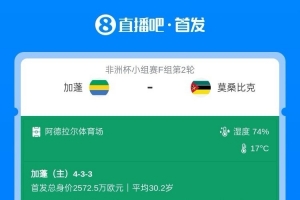 加蓬vs莫桑比克首发:奥巴梅扬、博安加先发,雷尼尔多出战