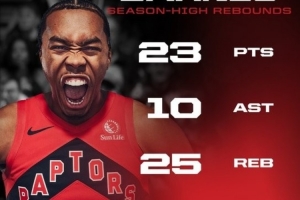 神兽级表现!猛龙晒巴恩斯数据海报:23分10助攻25篮板