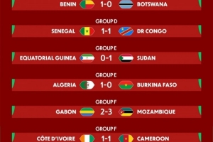 E组:阿尔及利亚1-0布基纳法索、赤道几内亚0-1苏丹