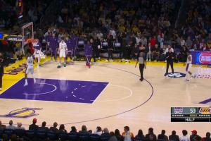 半场仅剩1.5秒 詹姆斯中场投篮出手不中 本赛季首次Heave出手