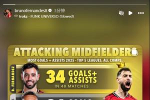 还得是大B哥!B费社媒晒个人数据:2025年进球+助攻五大联赛最多