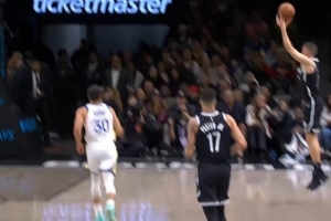 手感火热!8号秀杰明一节不到飙中3记三分 帮助篮网扩大领先