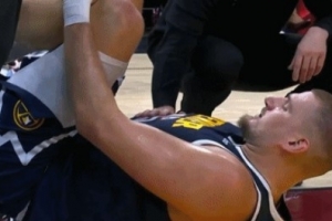 别有事啊!约基奇被斯潘塞·琼斯误伤踩到脚踝 疑似膝盖过度伸展