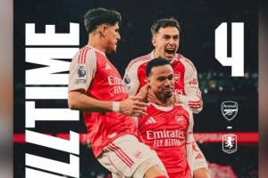 体育资讯12月31日讯 英超第19轮比赛,阿森纳主场4-1击败维拉。