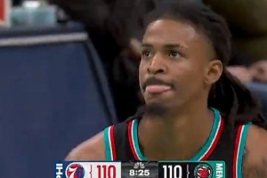 这球好难!莫兰特倚住博纳强突左手上篮2+1 单节4中4砍11分!