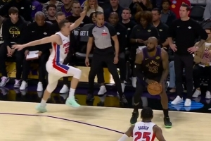 都知道你要投了!詹姆斯标志性横撤步假动作晃开邓罗命中三分