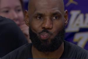 东契奇扑防邓罗被吹三分犯规 镜头照到詹姆斯在替补席撇嘴