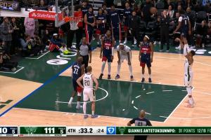 运气差点!字母哥补篮被帽+CJ中投准绝杀 字母哥中投反绝杀没进!