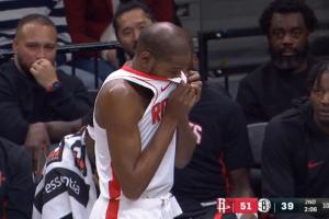 杜兰特被沃尔夫打铁后的球砸到脸爆粗:投的啥垃圾玩意儿