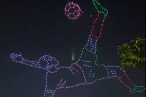 体育资讯1月2日讯 卡萨布兰卡市最近用无人机灯光,复刻了摩洛哥前锋卡埃比的倒钩时刻。