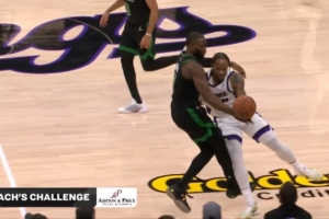 挑战失败!布朗逼抢德罗赞被吹犯规 绿军挑战失败&布朗六犯离场