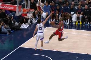 乔Damn!小卡空中漫步优美拉杆!末节已经轰下20分!