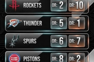 赛季至今攻防效率值均前10球队:火箭、雷霆、马刺、活塞、森林狼