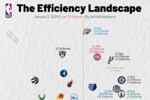 近十场效率:火金尼进攻爆炸 雷网塞固若金汤 刺船领先 湖人倒数