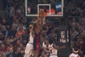 扣爽了!亨特吊球篮下莫布里 后者空中被打头仍然将球扣进